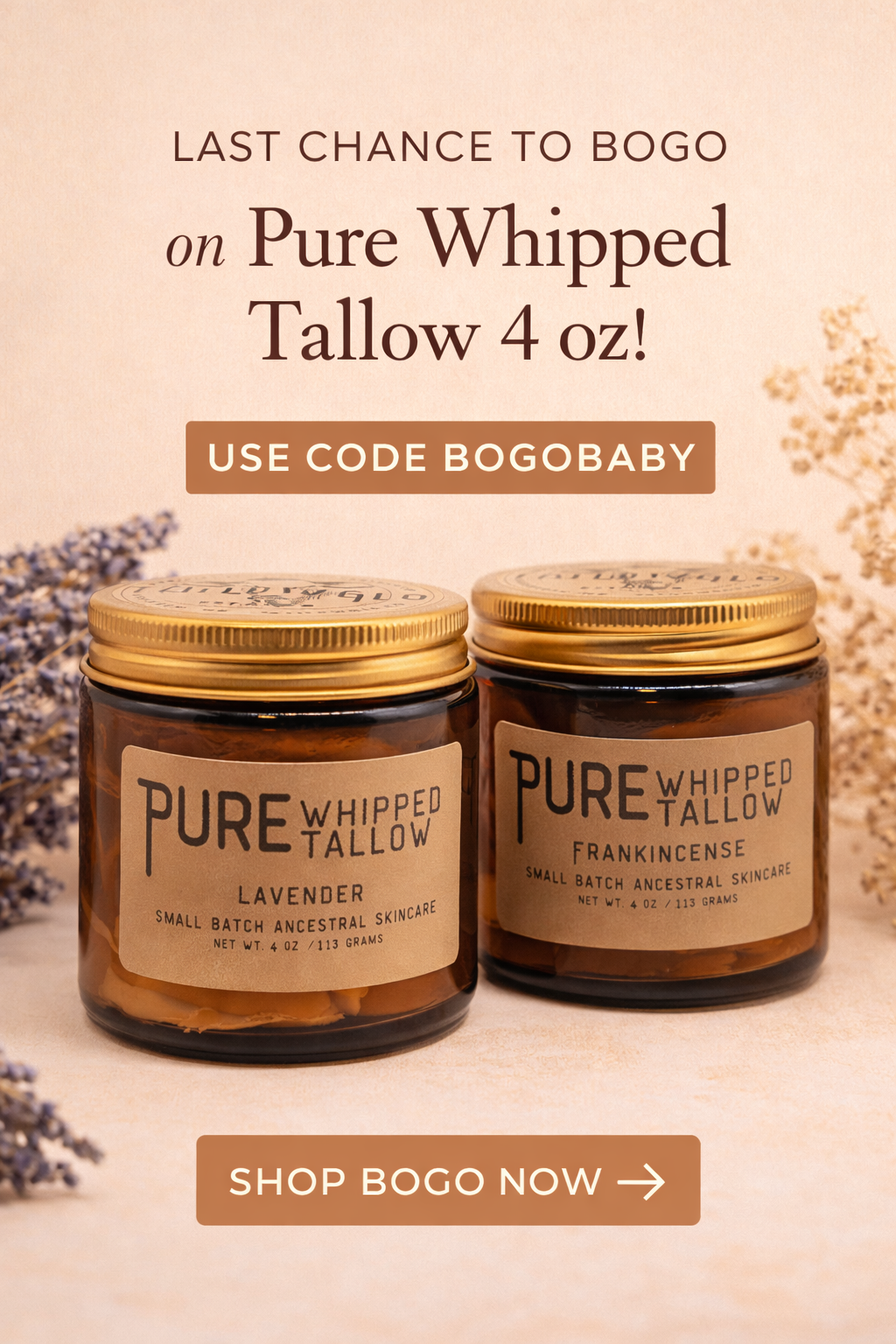 This is your final chance to grab our Pure Whipped Tallow 4 oz jars on a Buy One, Get One FREE offer before this small batch sells out. I just finished pouring these fresh batches ahead of welcoming my third baby, and I truly don’t know when I’ll be making more postpartum. Once this batch is gone, production will pause. Use code BOGOBABY at checkout or simply click the button below to stock up on your favorite ancestral skin food while it’s still here.